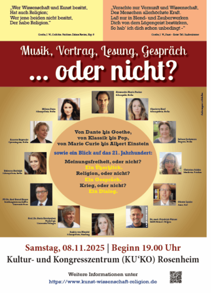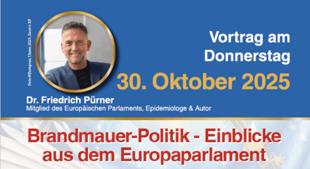 Vortrag am Donnerstag, den 30. Oktober 2025. Beginn: 19.30 Uhr. Ort: Kolpingsaal im Stadthotel Deggendorf, Östlicher Stadtgraben, 94469 Deggendorf